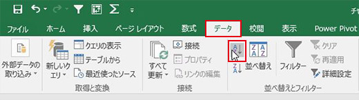 セルが選択されている状態で「データ」タブの「昇順」をクリックします。