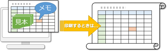 Excelで作った文書を印刷するとき、掲載したテキストボックスや図形、画像(写真)などを、配布する印刷物には載せないように、または印刷物を見せる相手によってそれらを表示するか・表示させないかを選択/設定することができます。