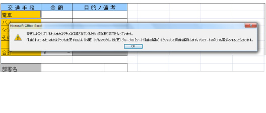 保護されたセルに入力や削除をしようとすると、下のようなアラートが出てきます。