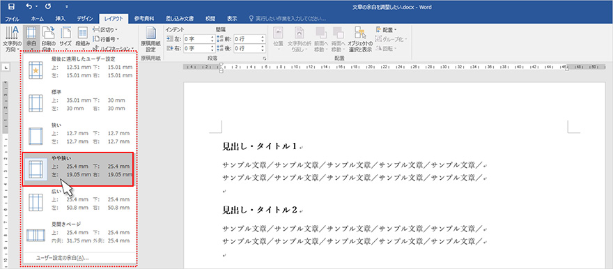 Word:文章の余白を調整したい