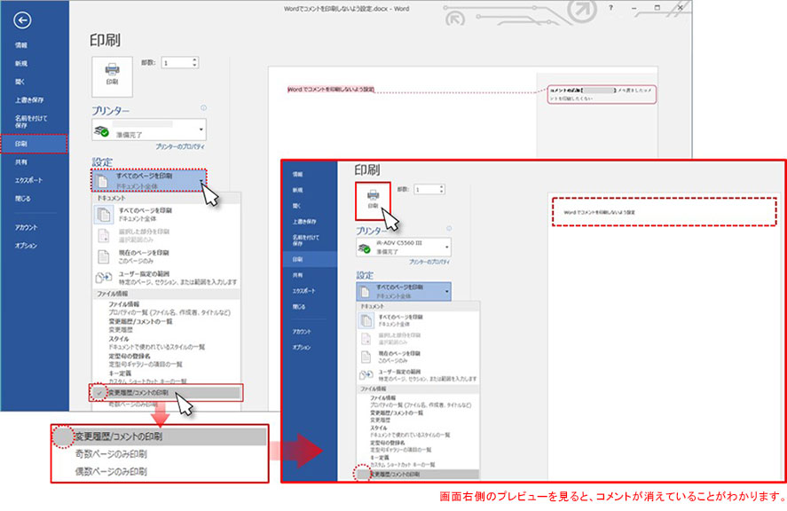 重要な伝達事項や簡単なメモ書きまで、コメントを入れたWord文書は親切で分かりやすいものです。印刷においても