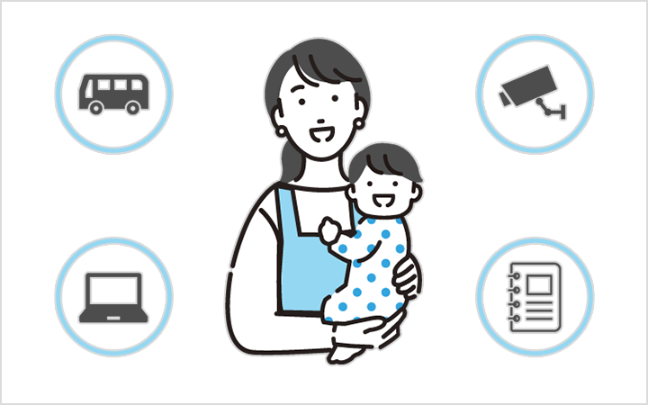欠席連絡や送迎バスの乗車変更などの連絡業務を円滑にし、GPS技術を活用して子どもの安全を見守ります。子ども・保護者・先生にとって安心・安全な保育環境の実現に貢献しますので、まずはお気軽にお問い合わせください。