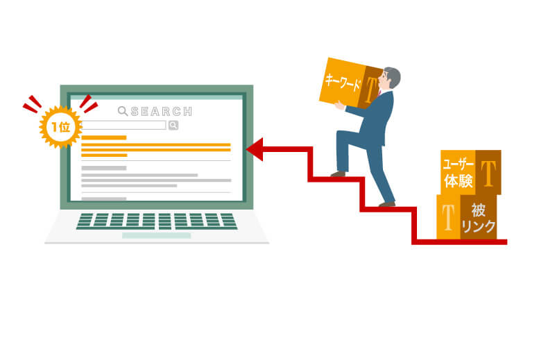 検索結果の上位に表示されれば、それだけサイトを見てもらいやすくなるのは当たり前だけど、そのためにはサイトの中に関連キーワードを多く使ったりとテクニックが必要で、それらを総称して「SEO対策」って言うんだ。Search Engine Optimization・・・んー、「検索エンジンの最適化」か。日本語にしてくれればいいのに。