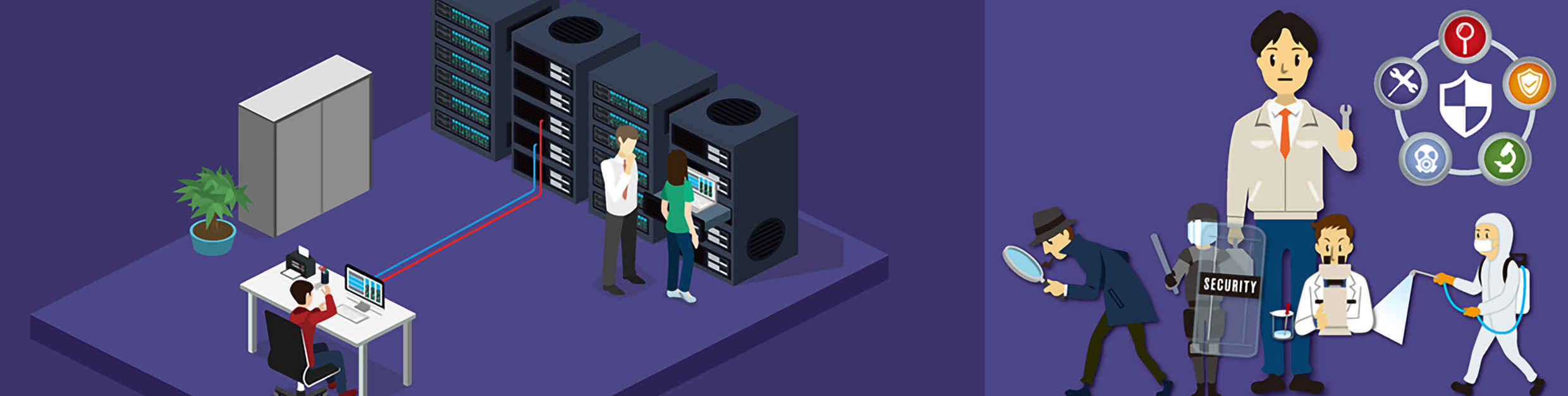 感染により停止された機能やサービスを正常な状態にリカバリーしたり、データの消失や不正な暗号化に備えて、適切な措置を検討し、速やかに実施します。スムーズに正常な運用ができるように手を尽くします。