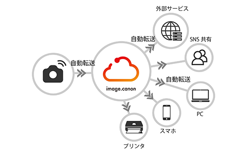 カメラから"image.canon"へ静止画・動画を自動転送可能