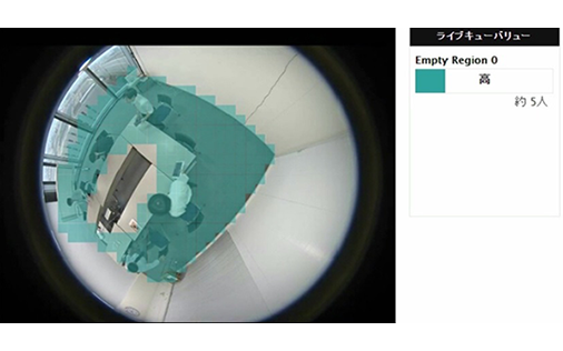 指定したエリア内の混雑状況を検知し視覚化、「限度値」を設定することでアラートを通知できます。