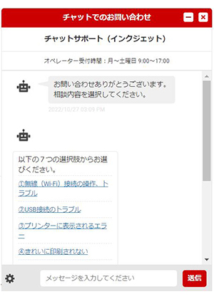 - お問い合わせ内容によっては、電話またはメールでの対応に切り替えさせていただく場合があります。