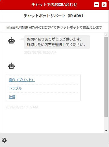 オフィス向け複合機 imageRUNNER ADVANCEチャットでのお問い合わせ