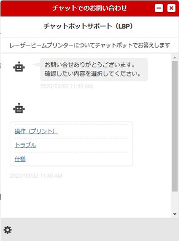 レーザービームプリンター Satera LASER BEAM PRINTER/LASER SHOTチャットでのお問い合わせ