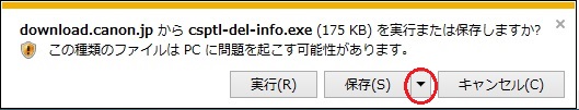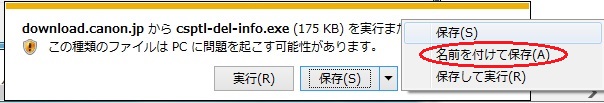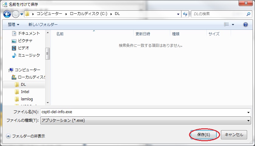 下記のダウンロードボタンをクリックし、「csptl-del-info.exe」をダウンロードします。