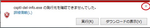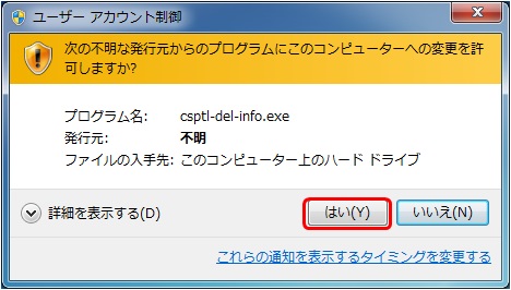 ダウンロードされた「csptl-del-info.exe」をダブルクリックし、起動します。
