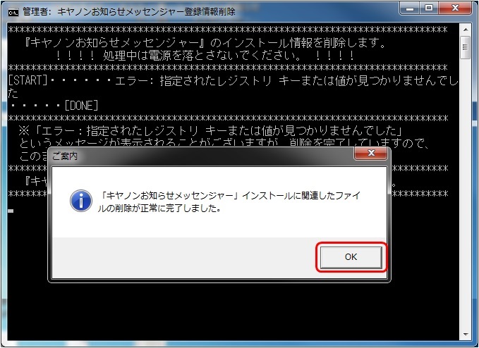 キヤノンお知らせメッセンジャーの削除ツール使用方法をご案内致します。