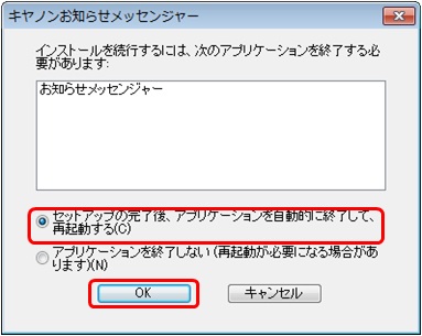 下記画面が出た場合は「セットアップの完了後、~」を選択して「OK」を押下します。