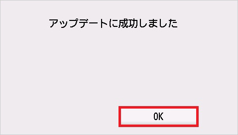 10.「アップデートに成功しました」メッセージが表示されたら、[OK]を選択します。