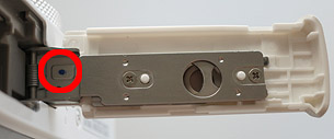 シリアル番号左から6桁目が“4”以下の製品でも、バッテリーカバー内側ヒンジ部に青マーキングが入っている製品は、修正ファームウエアが搭載されておりますので、対象製品には該当しません。そのままお使いください。